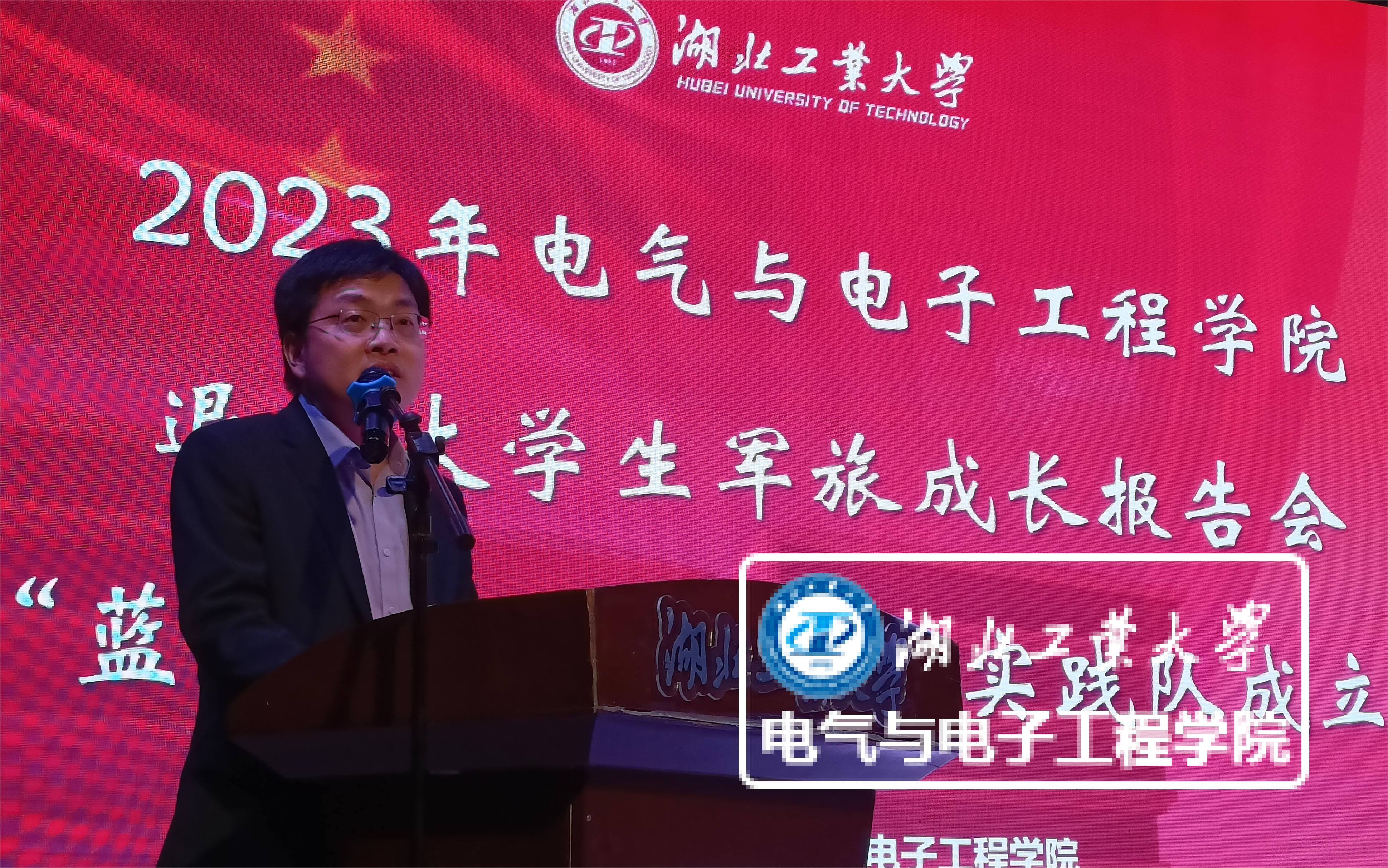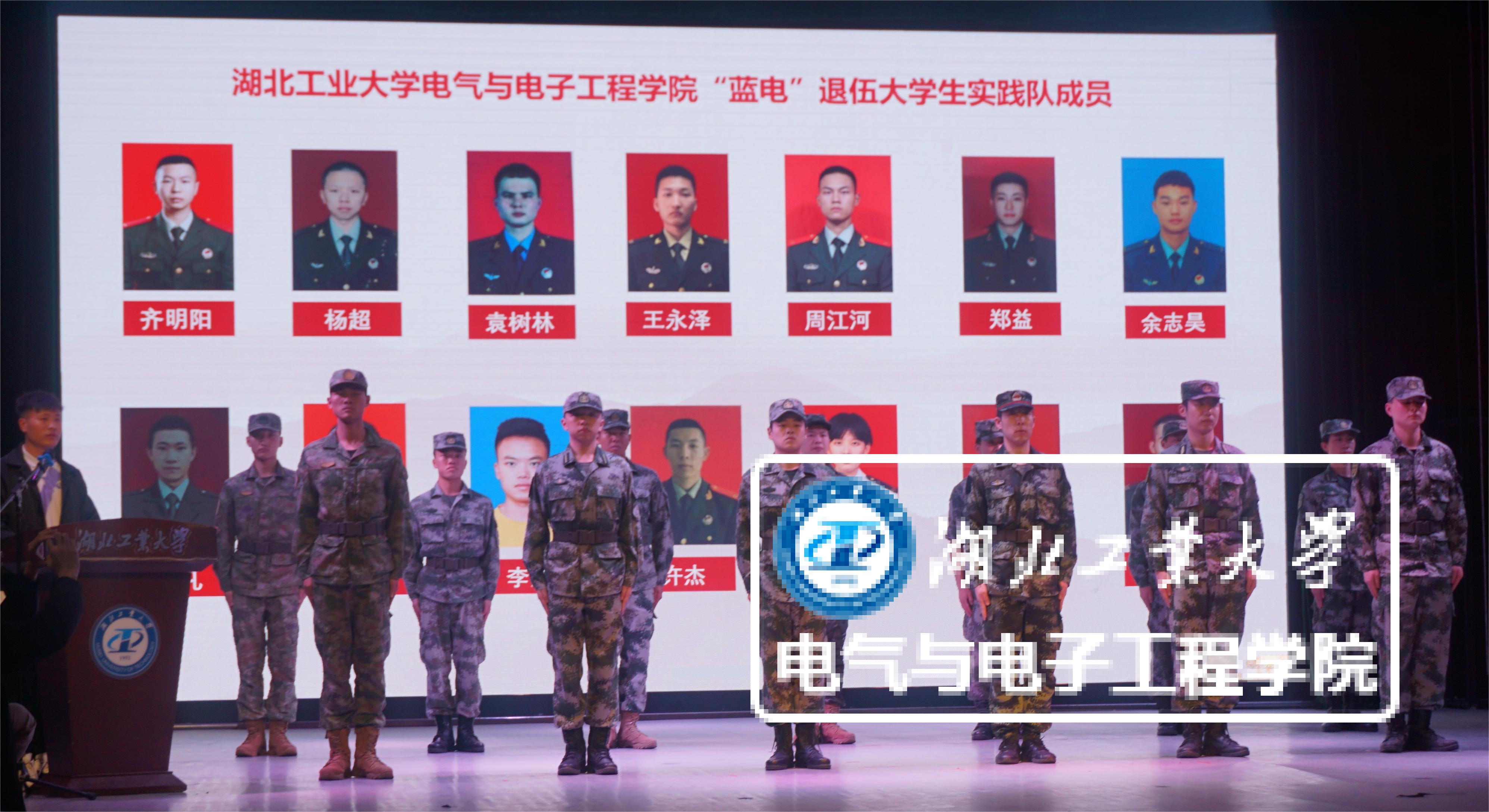2023年4月28日下午,电气与电子工程学院在大礼堂隆重举行“蓝电”退伍大学生实践队成立仪式暨退伍大学生军旅成长报告会。学院班子成员、校武装部指导老师、全体辅导员出席本次活动。