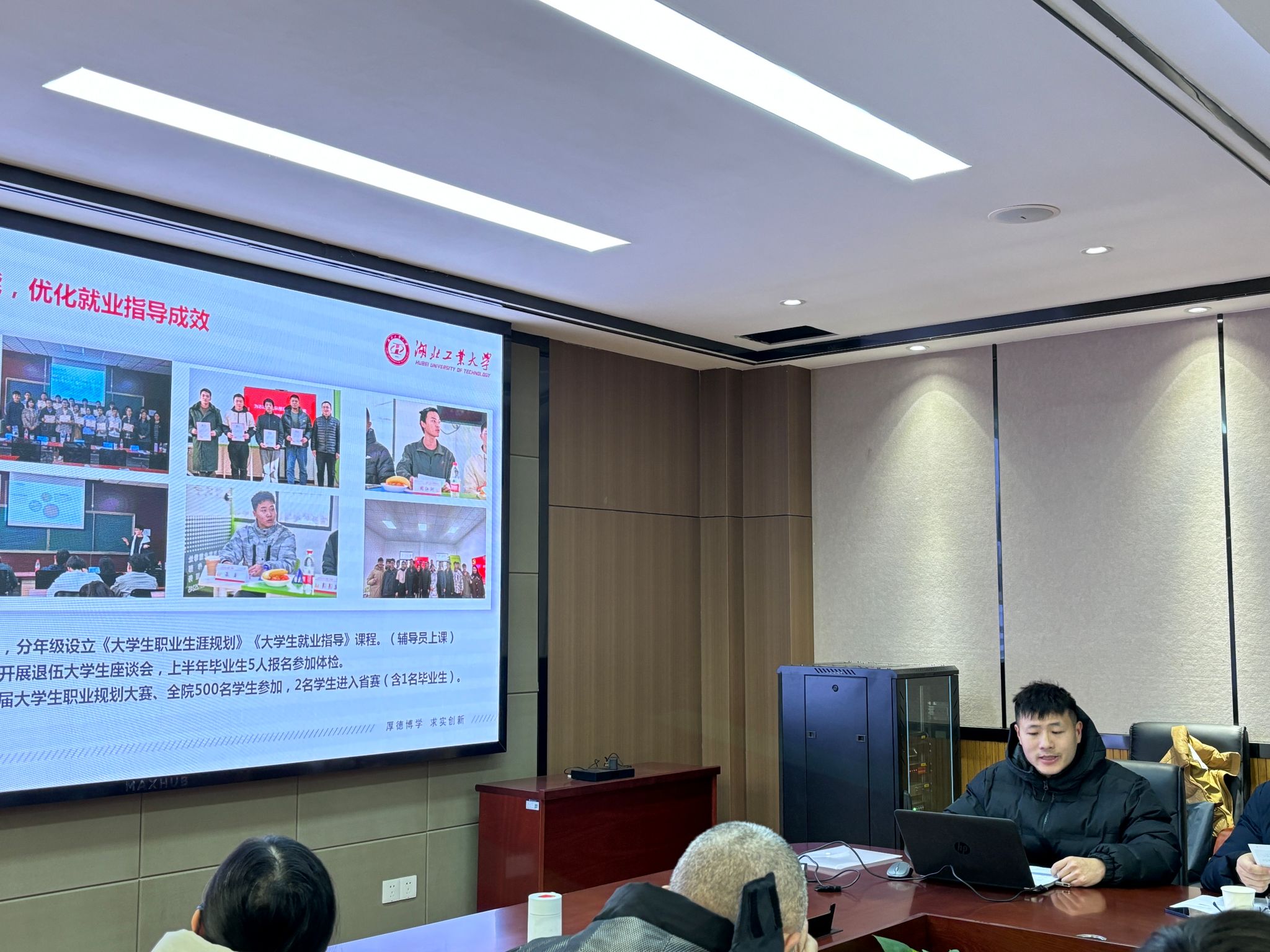 会议伊始,辅导员徐文杰和智瑞腾分别就2023年招生情况和2024届毕业生就业情况进行了详细汇报。徐文杰将2018-2023年电气学院在天潜沔三地的招生录取数据进行了细致分析、阐述问题并提出了相应对策。智瑞腾从2024届毕业生就业现状、前期工作开展情况、学业现状以及当前困境等方面进行了详细说明。