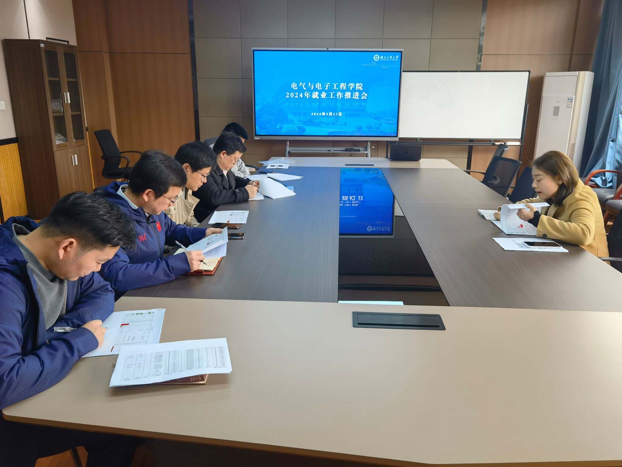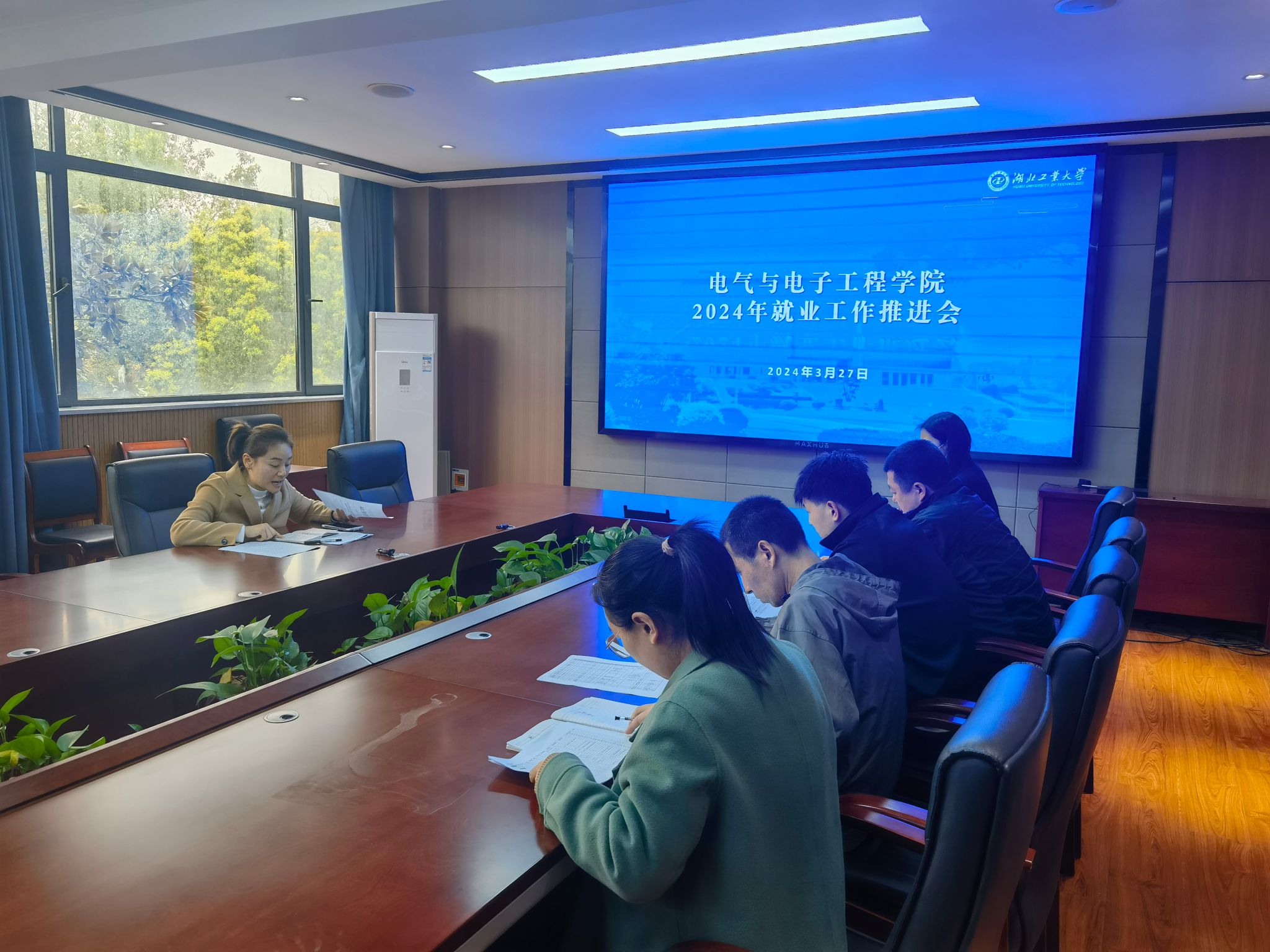 为全面贯彻落实党中央、国务院对高校就业工作的决策部署,2024年3月27日、3月28日,电气与电子工程学院在电气大楼A301、A303会议室召开2024年就业工作推进会。学院党委副书记王娇,各系主任、专任教师、毕业班班导师、20级辅导员参加本次会议,会议由王娇主持。