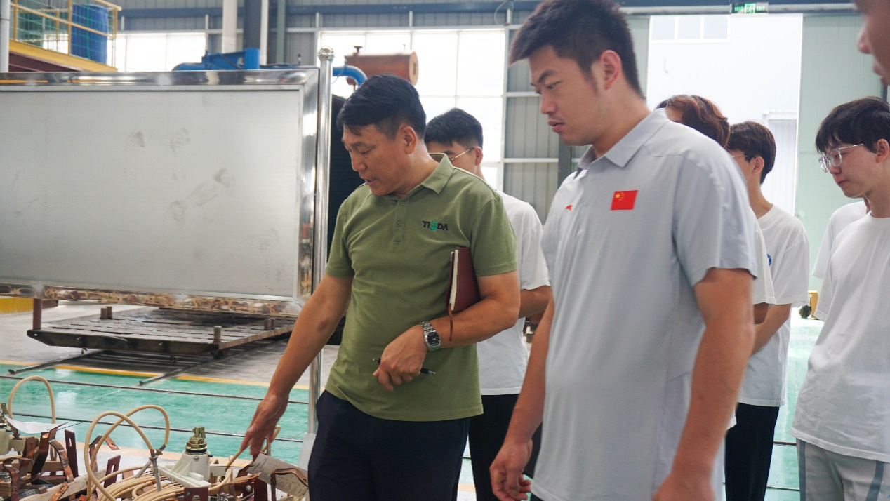 在参观完企业文化长廊后,专业人员为团队成员开展了科技讲堂,对厂房里的变压器的所选材料的优点、配电箱的在控制方面的改进和充电桩未来的发展方向进行了专业讲解。随后,便开展了座谈会,为团队成员解答在参观以及学习过程中所遇到的问题,在会议的最后,厂长以现身说法表达了对团队成员以及电气学子的嘱托与期望。