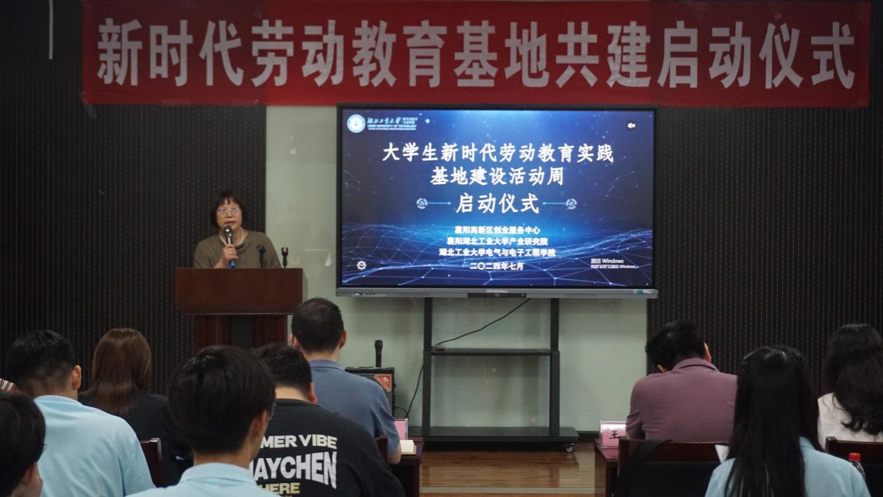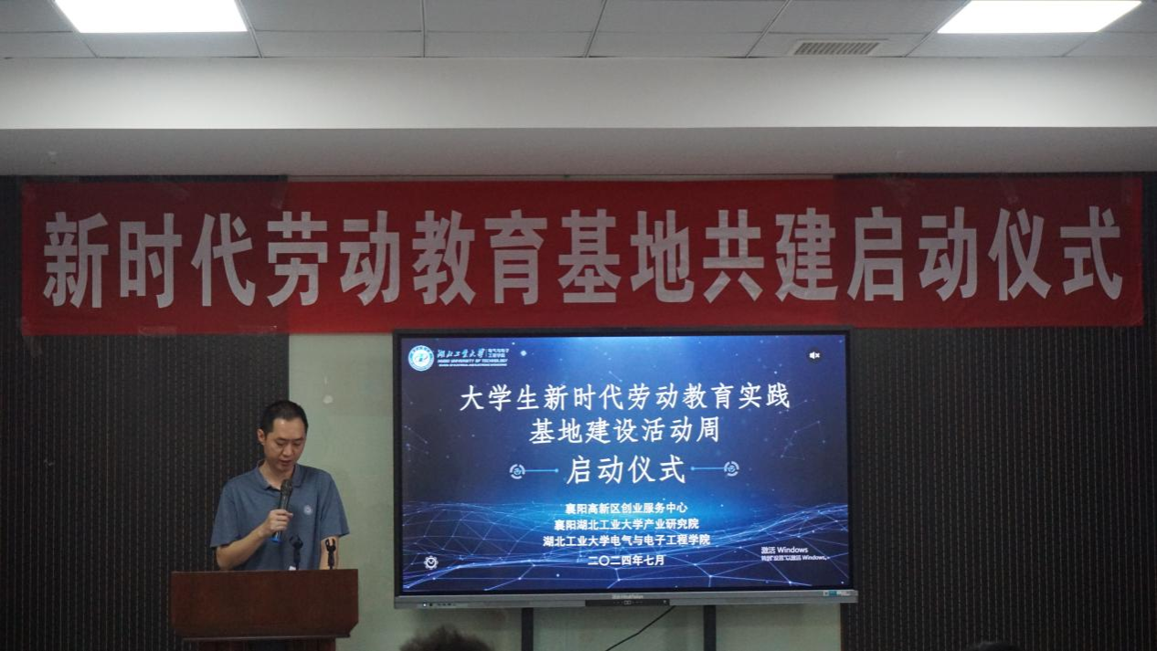 仪式上,襄阳高新区创业服务中心副主任郑骁致辞,欢迎湖北工业大学实践队师生来到襄阳开展劳动教育基地建设活动周实践,表示此次实践对于襄阳、学校及学生自身的劳动精神文明提升大有裨益,同时希望实践队员们能够时刻牢记“崇尚劳动、热爱劳动、辛勤劳动、诚实劳动”的劳动精神,将理论知识与实践相结合,为建设美好中国贡献力量。