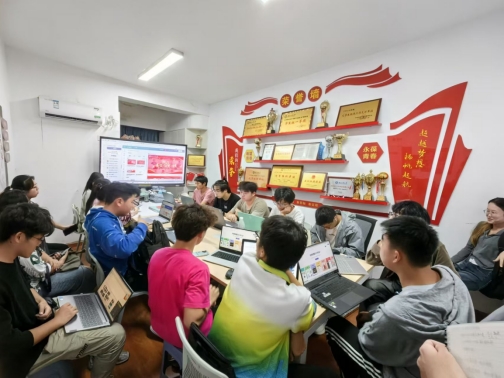活动现场,22级学生孟淼凭借丰富的海报制作经验,深入浅出地讲解了海报制作的关键要素。从设计理念的构思、色彩搭配的原则,到图形图像的处理、文字排版的技巧,一一进行了详细阐述。其他同学认真聆听,积极互动,不时提出问题与见解,气氛热烈。