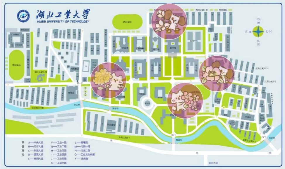 春日校园mini马拉松融合运动探索与自然美景,以花为媒,让电院学子们在奔跑中诠释雷锋“服务他人,蜕变自我”精神。本次活动设置了四大“寻芳打卡点”:① 图书馆(起点/终点);② 中区食堂小广场(山茶花);③ 2、3教十字路口(结香花);④ 西区食堂南侧(玉兰花);⑤ 中操体育学院旁(樱花)。