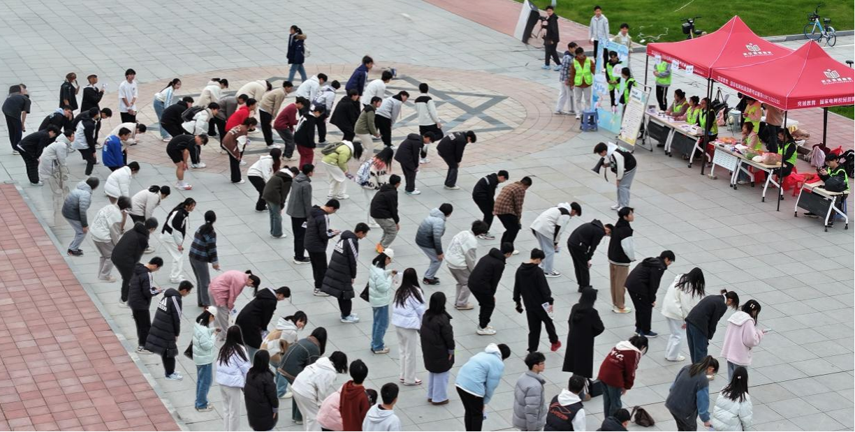 在正式开跑前,老师指导大家一起进行了跑前热身,全场的运动激情被迅速点燃,大家摩拳擦掌,蓄势待发。为保障同学们的安全,电气学院联合学校保卫处、校医院,设置了医疗紧急救助站,舒医生、校园110全程守护,为这场浪漫奔跑筑牢安全防线。