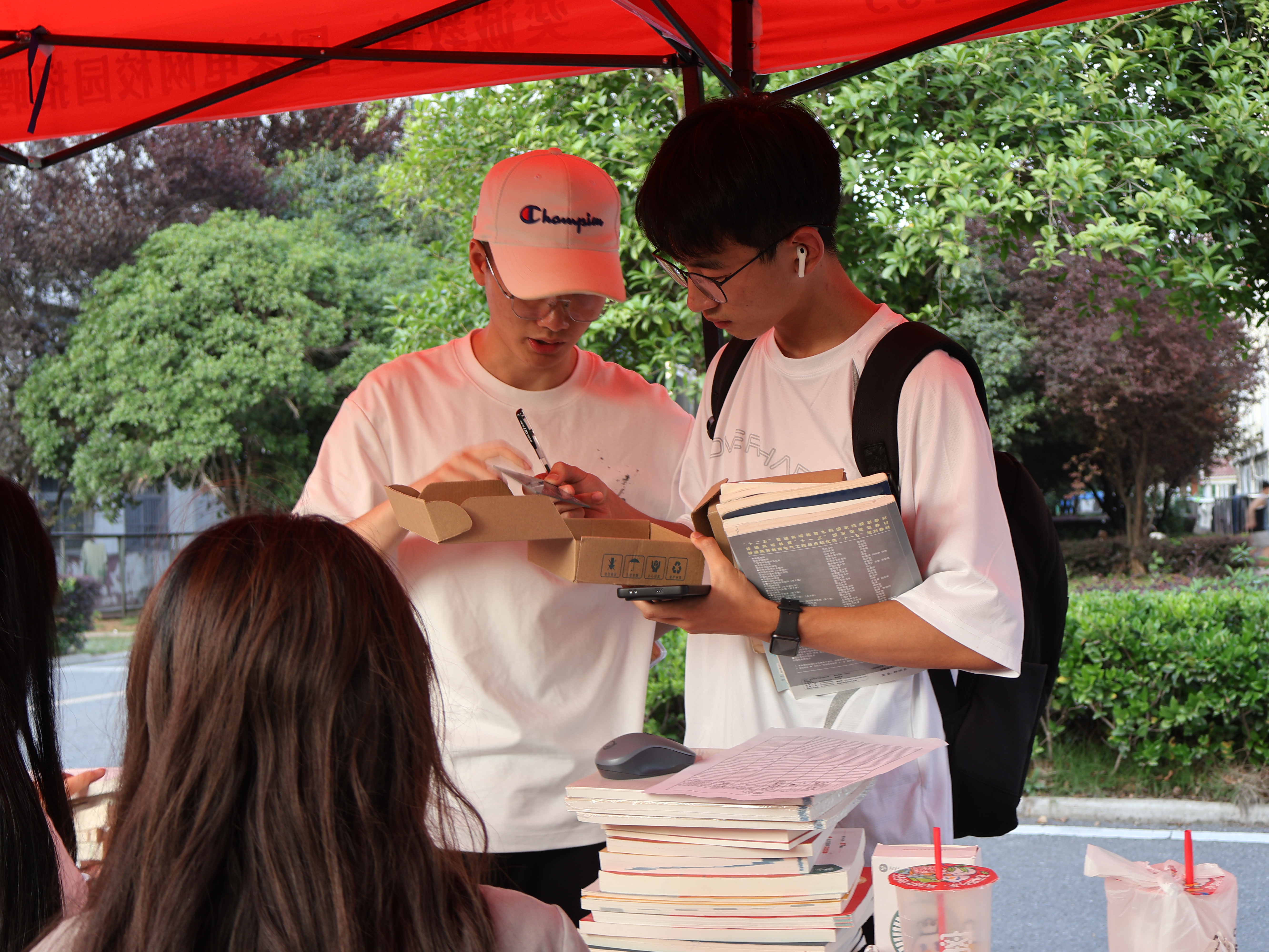 同期,学院组织的“绿色离校·爱心传递”毕业生物品跳蚤市场活动也顺利开展。中午及傍晚分时段在东区巡司河边举办,毕业生们将自己心爱的专业教材、学习资料、实验工具(如万用表、开发板)、以及台灯、耳机、键盘、收纳箱等生活用品进行集中展售,价格远低于市场价,部分物品免费赠予。部分即将离校的毕业生们也发挥专业所长为学弟学妹精心制作了一批富有科技感的作品。如可调光LED台灯、、高精度电子校徽时钟等,不仅体现了扎实的专业技能与创新实践能力,也寄托了对学弟学妹们的关怀。毕业生代表陈同学在赠送自制的智能小夜灯时表示:“希望这些工具能对大家的专业学习有所帮助。”
