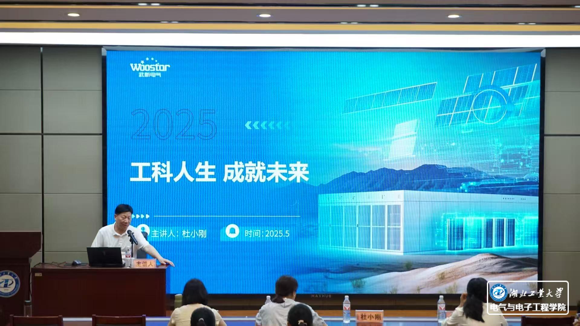 5月22日,湖北工业大学电气与电子工程学院“铸梦工程”系列活动之“学习劳模精神,赋能职业规划”专题讲座在1-005教室成功举办。活动深度践行资助育人理念,特邀武新电气董事长、行业劳模杜小刚作“工科人生 成就未来”主题分享,学院党委副书记王娇出席活动并作总结致辞。