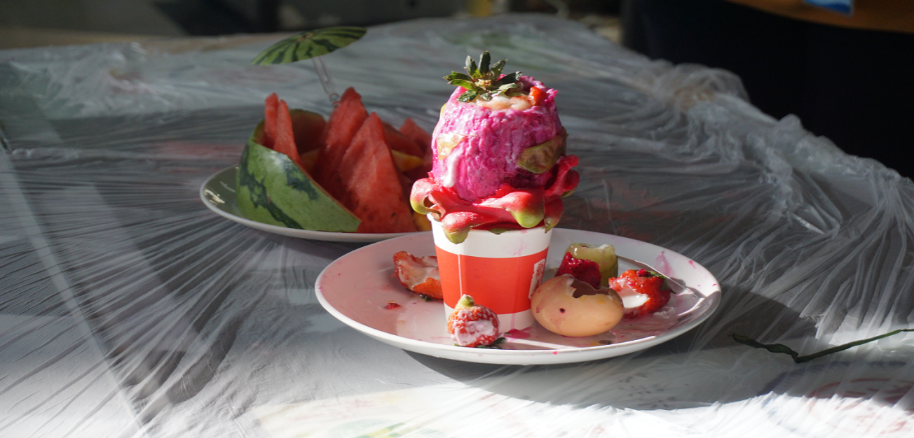 霸果盛宴、心想事成、四龙戏珠、梦幻天鹅湖等等,B组选手们的拼盘别具一格,各式各样的形状让人赞叹不已。其中徐姊媛、张何苗选手的霸果盛宴用两块西瓜就堆叠出了水果的霸气,中央满满的水果更是将盛宴二字体现地淋漓尽致!