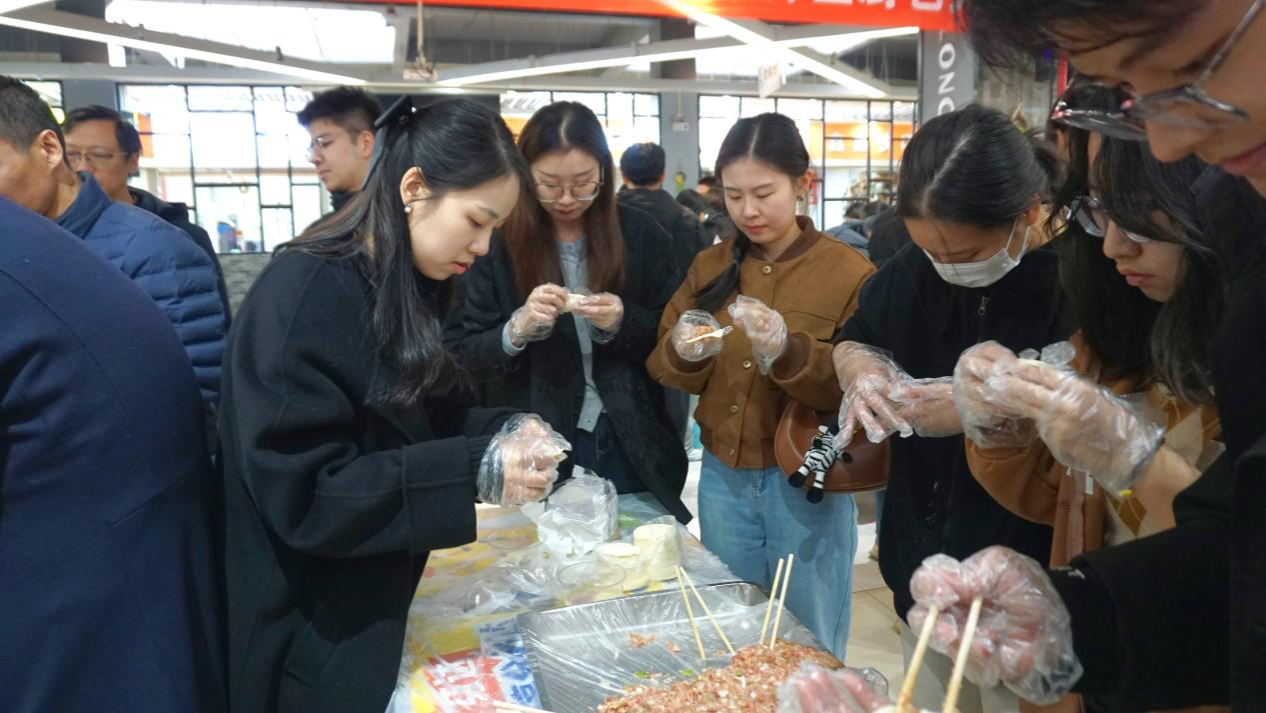 中场休息期间,由评委、师生、食堂阿姨们一同包好的饺子也热气腾腾地出锅了!来自五湖四海的同学所包出的饺子同样各具特色。有韭菜馅的,也有猪肉馅的;有半月形的,也有花边形的。大家手持碗筷,享用着包含各地文化的饺子,一口下肚就驱散了半身寒气。