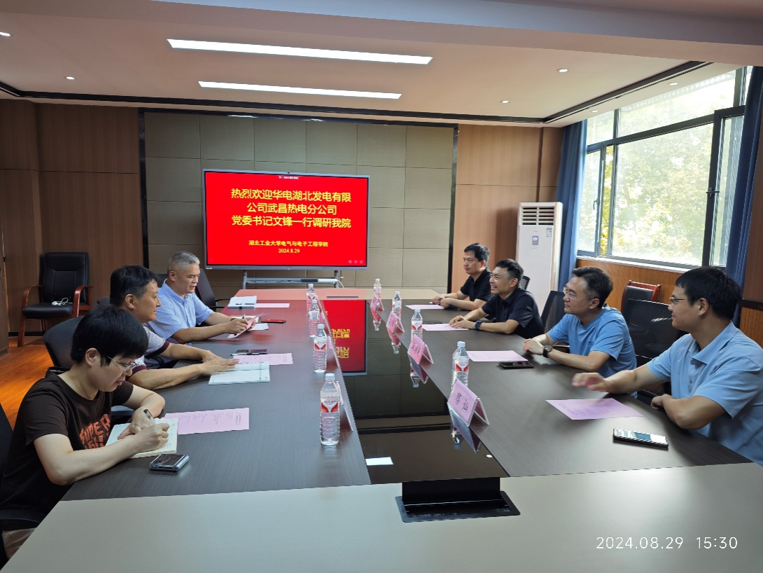 2024年8月29日下午,华电湖北发电有限公司武昌热电分公司党委书记文锋等一行4人莅临电气学院调研交流。学院副院长陈俊,教师代表参加。