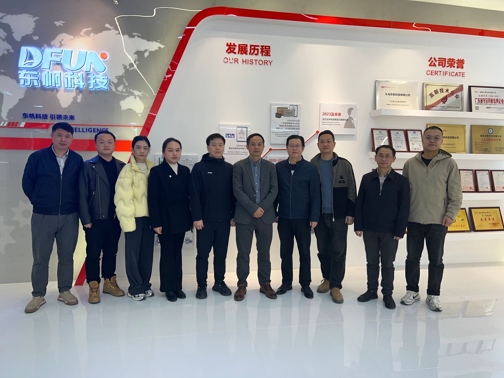 在珠海东帆科技有限公司,董事长周传建为学院一行介绍了公司展厅,并表示,与湖工大电气学院的合作,希望能够从人才招聘与输送开始,不断加强交流,将合作深入到本科生、硕士研究生的培养中,同时拓阔合作面,将科技产品研发的合作也推进开来。