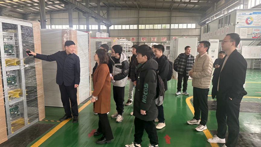 武新电气董事长杜小刚亲自接待了学院一行人。杜小刚董事长带领大家参观了生产车间,逐一介绍企业的核心产品和科技创新成果,分享了自己的创业经历和人生感悟,勉励同学们要有恒心和毅力,坚持长期战略,培养钻研精神,相信只要努力一定能够成功并有所收获。杜小刚董事长精神饱满、思维敏捷,为同学们上了一堂生动的创业课和人生成长思政课。