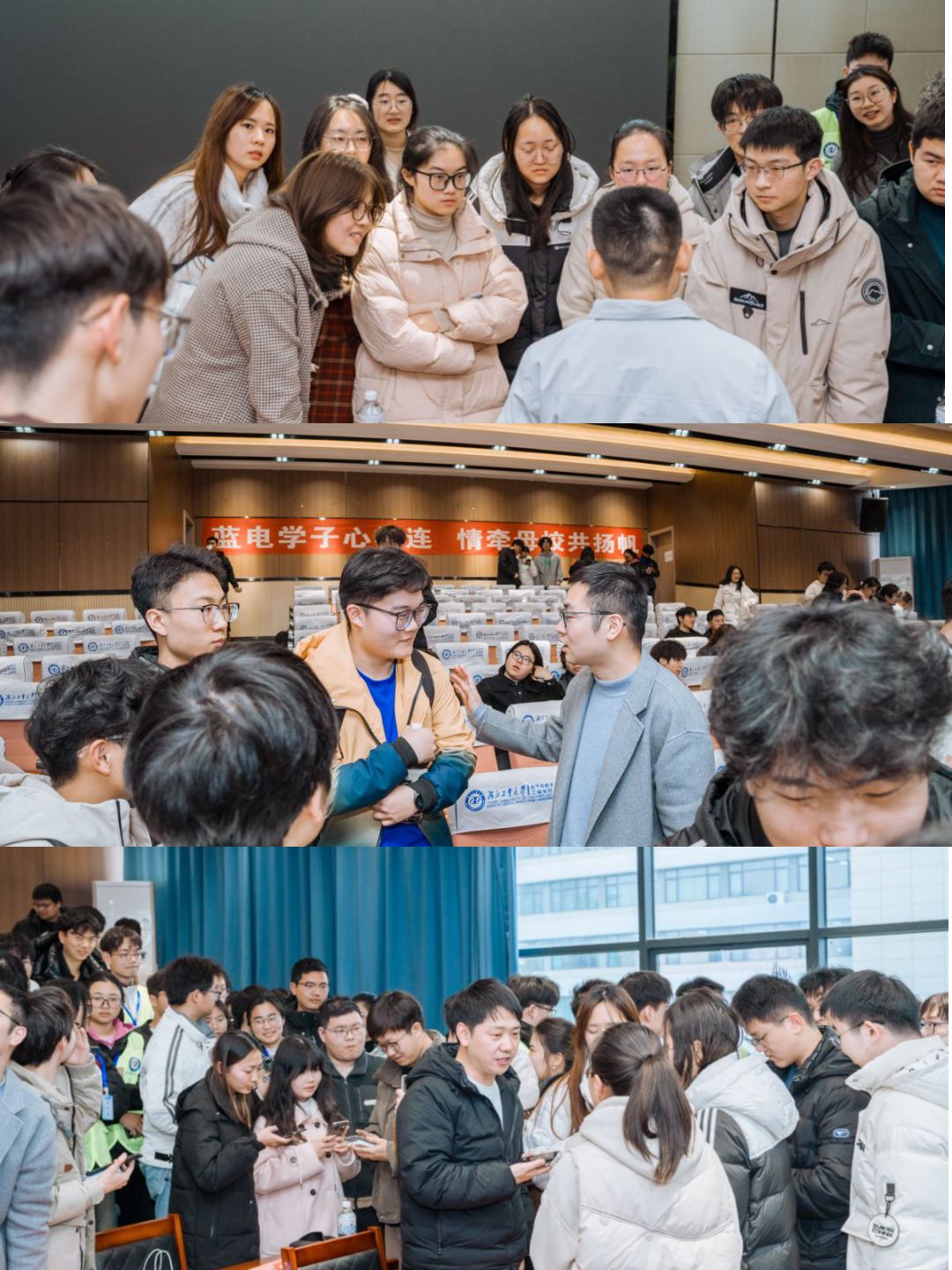 传承蓝电精神,再启新程,活动结束后,多位校友与在校生们进一步面对面对接答疑解惑、交换联系方式,为本次座谈会画上务实而温暖的句点。此次蓝电校友座谈会不仅是一场跨越几十届的“精神接力”,更开启了校企协同育人的新篇章。湖北工业大学电气学院将以此次活动为契机,持续凝聚校友力量,为培养新时代人才注入强劲动能。
