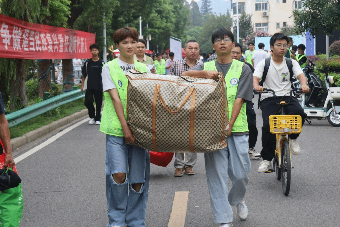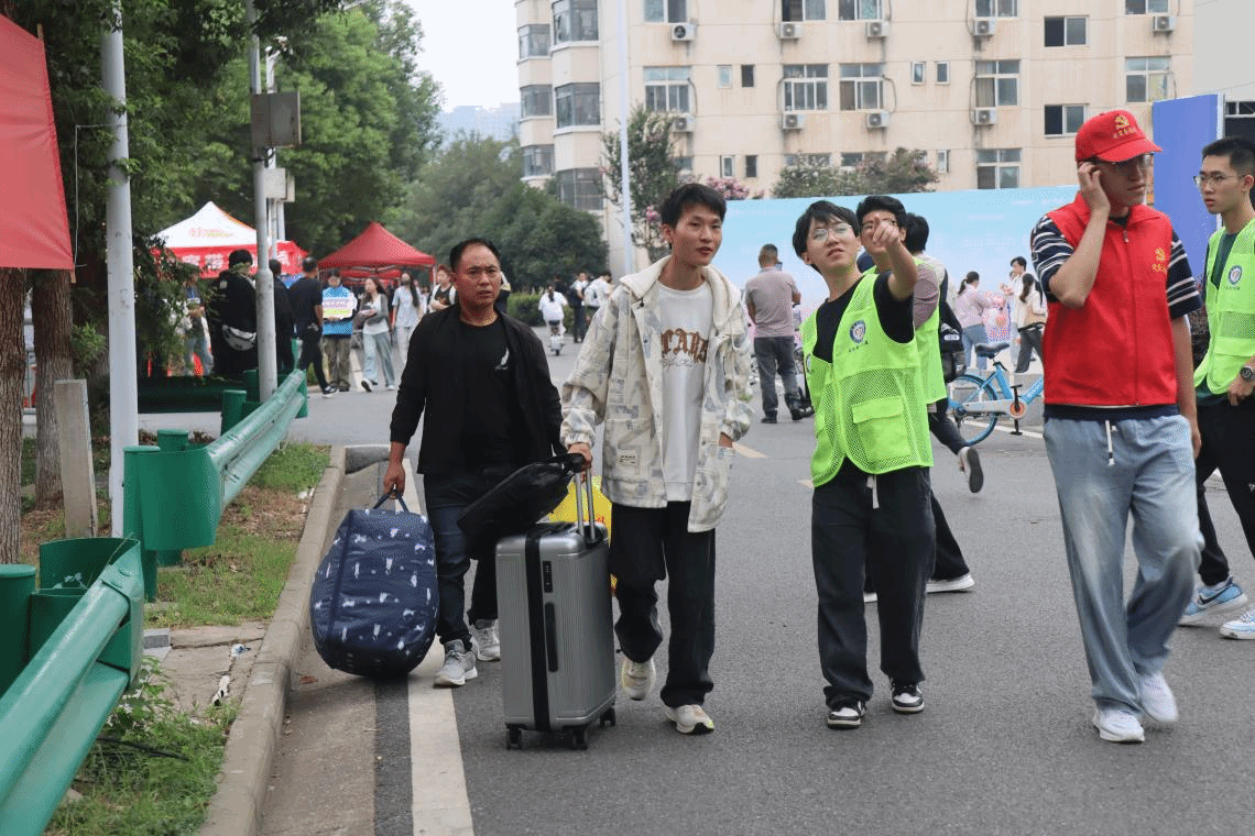 “同学,我帮你提行李!”“东苑宿舍这边走,路上我给你讲讲校园里的生活小技巧!” 迎新现场,身着志愿服的学生志愿者们成为最亮眼的风景线。尽管有时烈日当空,汗水浸湿衣衫,但他们的笑容始终灿烂,热情丝毫不减。学院严格遵循 “安全有序、热情周到、便捷高效” 的原则,在东苑2栋、7栋,研究生公寓等报到点精心设置党员先锋岗、专家教授咨询点、新生报到服务点、绿色通道咨询站、蓝电中心展示台及征兵入伍咨询点六大服务阵地,全方位覆盖新生报到需求 —— 党员先锋岗发挥模范带头作用,主动帮扶有需要的新生;专家教授咨询点为新生解读专业课程体系与发展方向;绿色通道咨询站保障家庭经济困难新生顺利入学;蓝电中心展示台则通过实物与图文,让新生提前感受学院的学科特色与科研实力,一系列贴心服务赢得新生及家长的连连称赞。