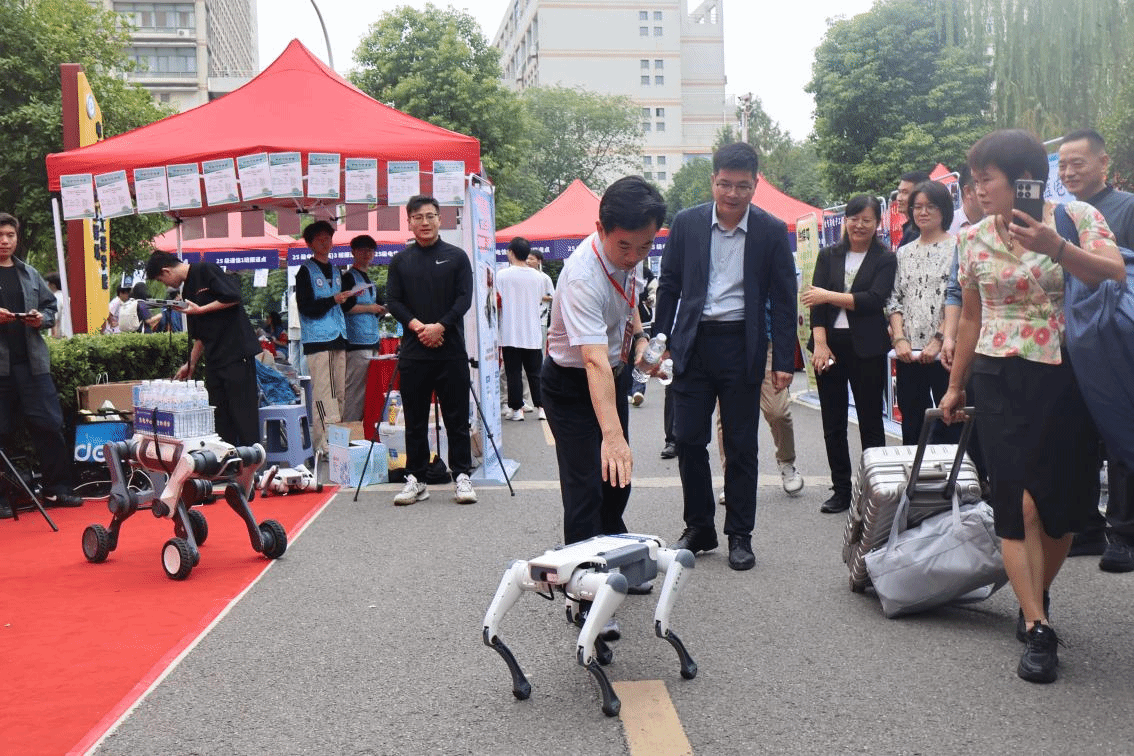 为营造温馨活泼的迎新氛围,学院在迎新点设置机器狗、外骨骼装备等现场展示活动,让学生了解人工智能技术的发展趋势,激发学生对前沿科技的兴趣,吸引路过家长及师生驻足观看;为切实服务来校学生家长,学院提前组织拍摄湖北工业大学校园实景导航宣传短视频并在报到点循环播放。此外,内容丰富的宣传展板详细介绍学院历史、师资力量与优秀学子事迹;心意满满的新生抽奖活动准备了定制书签、专业相关书籍等礼品,让新生在报到之余收获惊喜。更令人欣慰的是,几位刚完成报到手续的新生,被学长学姐的热情深深感染,主动穿上志愿服加入迎新队伍,接过服务接力棒,用行动传递着电气学院“大家庭”的温暖与凝聚力。