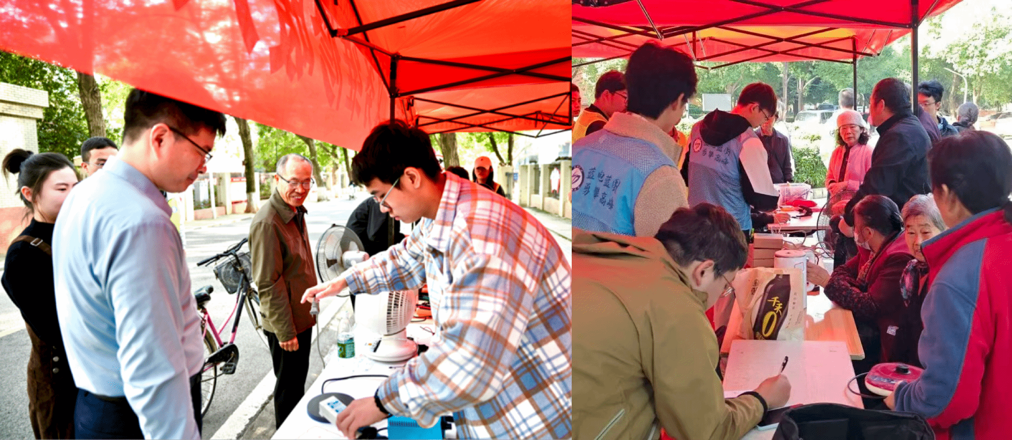 当日清晨,蓝电爱心联盟志愿服务团队已经在湖工大南苑社区300套与900套设立维修点位、陈列维修设备,组织到场的同学进行登记。摆点不久后,便有许多居民送来故障家电,其中不少居民表示他们去年也来维修过故障家电,感慨蓝电中心几十年来一直坚持做一件事很可贵。