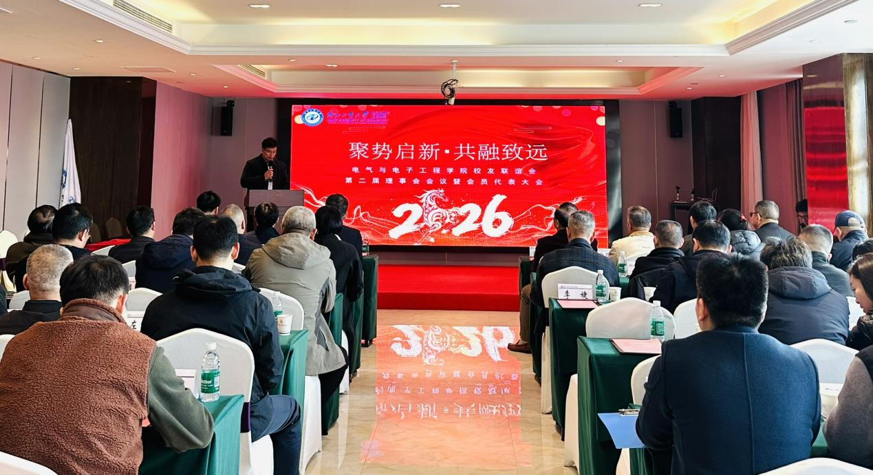 院党委书记王东明发表讲话。他呼吁,校友会要紧扣学院电气与电子工程学科特色与高质量发展需求,深度盘活校友资源优势,聚焦人才培养、科研创新、社会服务三大核心领域,主动搭建交流协作平台,凝聚校友智慧力量,携手并肩、群策群力,为学院建设高水平学科、培育高素质人才、服务区域经济社会发展共创崭新辉煌。