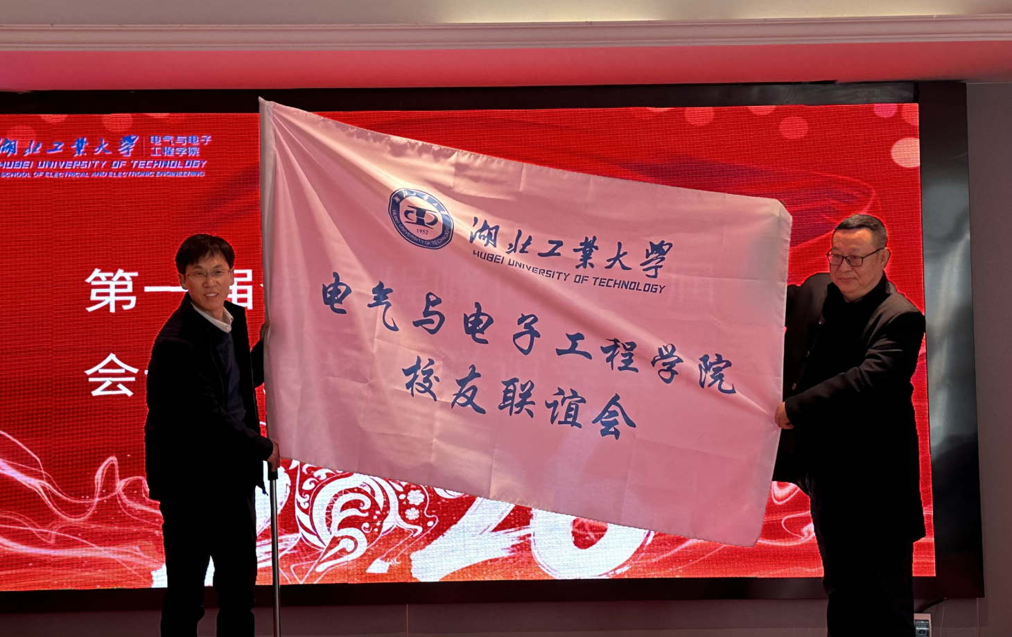 会议由学院党委副书记王旭主持。会议伊始,校社会资源处处长、校友会秘书长王俊宣读《湖北工业大学校友会关于同意召开湖北工业大学电气与电子工程学院校友联谊会第二届理事会会议暨会员代表大会的批复》。随后,第一届校友联谊会会长作工作报告,全面回顾联谊会成立以来在凝聚校友力量、服务学院发展、助力人才培养等方面的工作成效与经验启示。大会严格履行审议表决程序,一致通过电气与电子工程学院校友联谊会新一届组织机构成员名单,并举行会旗交接仪式。