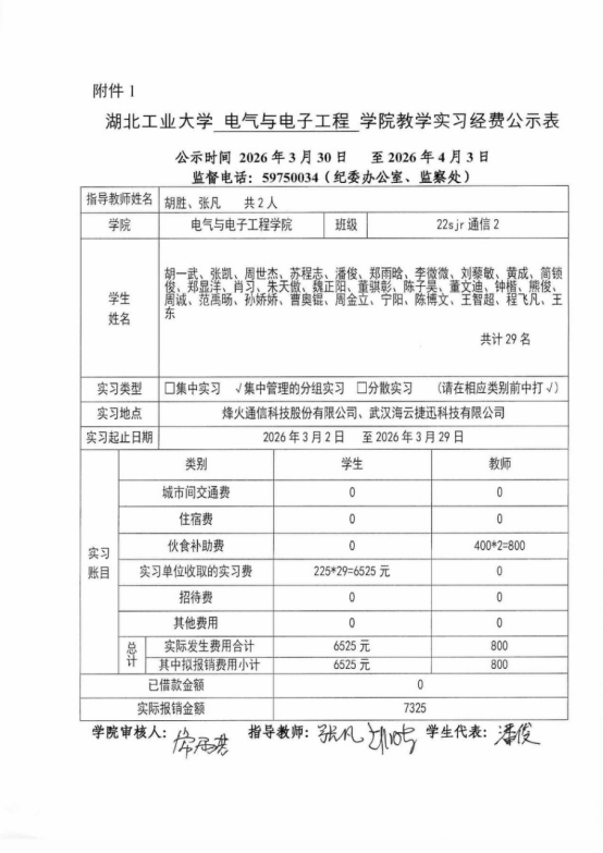 附件:《湖北工业大学电气学院实习经费公示表》